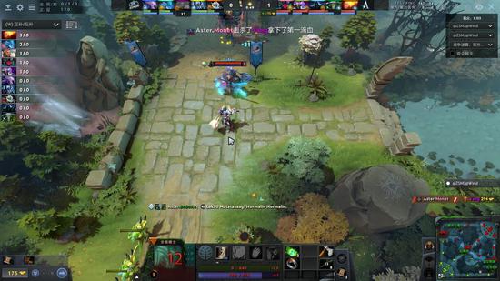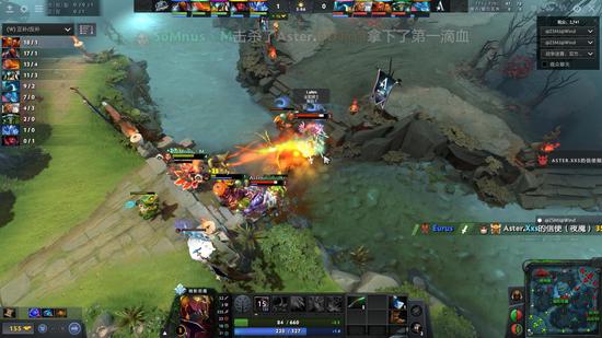 55秒,上路亚巴顿学被动将全能打沉默TB魔化平A拿下一血,前十分钟Aster线上打的特别凶,对虚空假面这一路的针对十分到位,经济领先2k多。