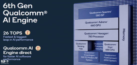 · 融合式架构的 Hexagon 780 处理器,为第六代 AI Engine 带来算力上的暴涨。