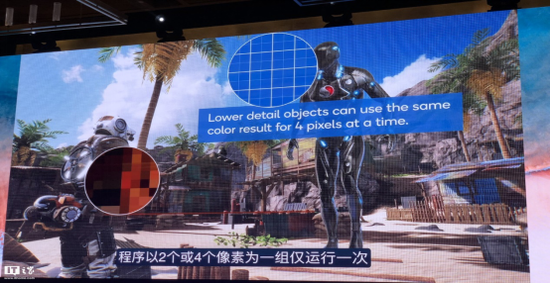 可变分辨率渲染允许开发人员指定着色器程序以 2 个或 4 个像素为一组仅运行一次,然后将这些颜色结果重新复用于周围的像素着色。