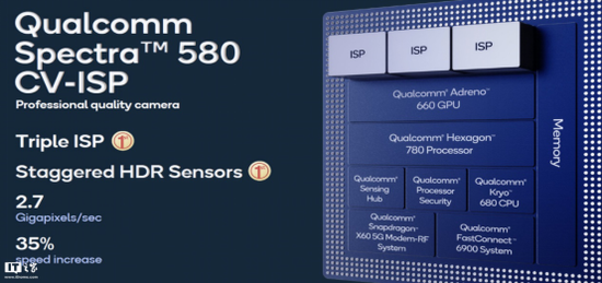 Spectra 580 还支持高通第 10 代 3A 算法(自动对焦、自动曝光和自动白平衡),这是首次由 AI 赋能的 3A 算法。