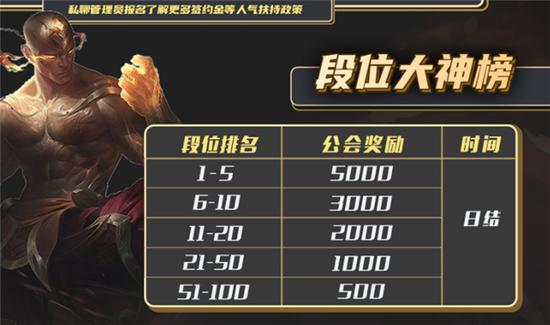 招募令对主播的要求划分非常详细,有“段位大神榜”、“英雄大神榜”、“新账号冲榜”等,每个分类的要求和奖励都不相同。值得注意的是,本次大鲲电竞招募主播的奖励十分可观,拿“段位大神榜”举例,段位排名第一,公会每天奖励5000元。而且对排名落后的新玩家主播也特别友好,只要在相应段位的胜率达到平台要求,也有不错的奖赏。