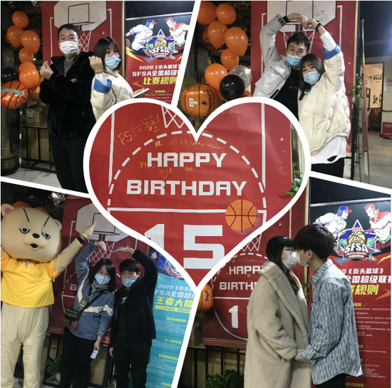 上海站官方为FSER们准备了15周年定制款可乐以及蛋糕一起为街头篮球庆生,现场还有露美的coser小姐姐和愤怒的小熊一起为选手们加油打气,更有彩绘师为大家画上纹身buff,拍照留念即可获得纹身奖励卡,15周年的庆生活动在寒冷的冬季能给FSER们带来一丝温暖,在欢乐的庆生氛围中,FSER们开始了他们的今年最后一次地区赛的征程。