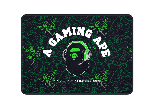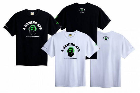 此番Razer X BAPE系列产品融合了两个品牌的经典视觉元素,创作了电竞专属“猿人头”LOGO以及特别标语,将日本里原宿街头文化与电竞文化巧妙地结合,用雷蛇风格的视觉语言为潮流玩家打造此次联名产品。