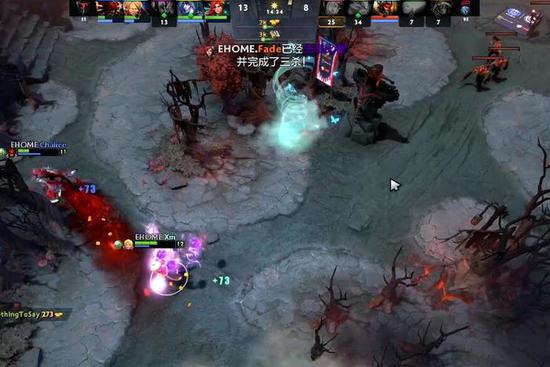 和第二局进行了一个角色互换,这次被全图追着提款的变成了EHOME众将,地图上各个位置都能看到他们落单被抓。24分钟中路二塔前,被大鱼跳踩的冰龙被迫交大,再无顾忌的猛犸大住血魔斯温,队友跟上输出完成击杀,觉得再难有胜机的EHOME选择短痛打出gg。