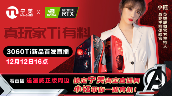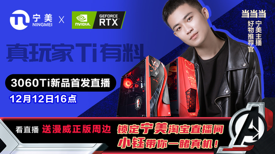 真玩家Ti有料,GeForce RTX 3060Ti新品首发直播来了!12月12日16点,NVIDIA中国区产品经理吕壮、英雄联盟官方主持人小钰将空降宁美天猫官方旗舰店直播间,携手宁美资深主播当当当,带你云品鉴GeForce RTX 3060Ti!