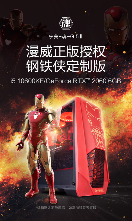 这款主机是宁美热销超72万台的“旗舰机皇”主机的升级版!机箱整体以钢铁侠的红色调为主,正面印刻金色钢铁侠的形象,侧面印有霸气脉冲炮重金属武器,真实还原钢铁侠的科技、军工与智能感形象。主机点亮时,全侧透钢化玻璃设计,让内部灯光一览无遗,充满了黑科技质感。在配置上,宁美-魂-GI5 Ⅱ 钢铁侠定制版主机搭载十代i5处理器以及GeForce RTX 3060Ti显卡,快速响应的同时,带给游戏玩家更加身临其境的游戏体验。