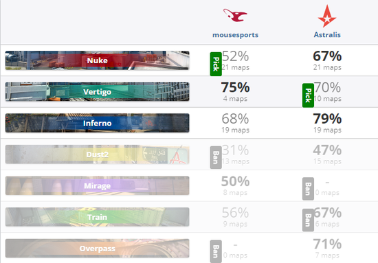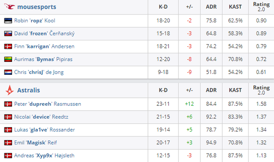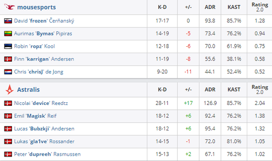 mousesports 0-2 Astralis(Nuke 5-16;Vertigo 8-16)