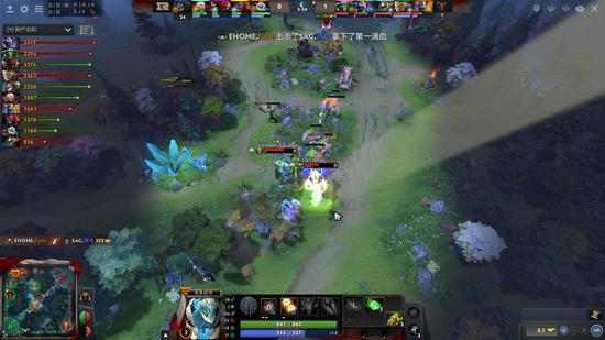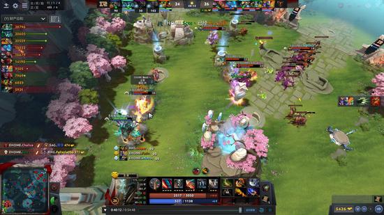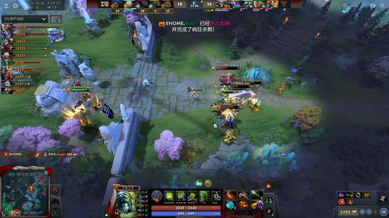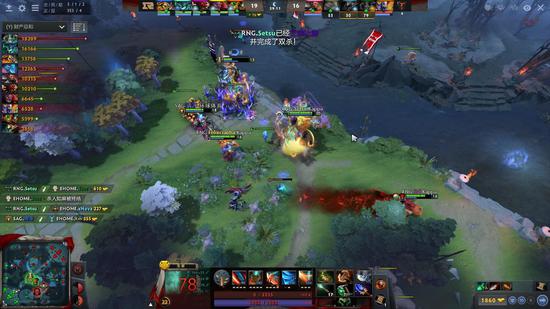 38分钟,双方在天辉下路野区爆发遭遇战,EHOME剑圣在孤身一人面对对方四人的情况下,先后释放无敌斩,迅风斩,黑皇杖,分身斧,剑圣风暴。在1打4的情况下硬生生斩死三人后撤走,队友随后接应,RNG被打出一波团灭。