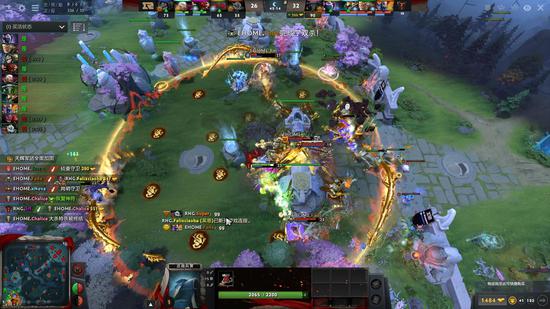 21分钟,莱恩小骷髅黑鸟开雾先杀掉斧王,随后EHOME一个接一个被留,前前后后除剑圣外的四人全部阵亡,随后RNG打盾,小骷髅带盾。