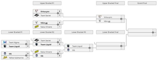 EPIC联赛淘汰赛败者组第二轮,首先是Secret对阵Liquid,Liquid展示出了惊人的韧性,两局都在经济局势落后的情况下,找到Secret的破绽逆转局势,最终以2-0击败Secret晋级,而Secret则连输两轮遭淘汰。然后是OG迎战Na’Vi,OG以两局小精灵体系死保核心,在核心成形后带走Na’Vi。OG以2-0淘汰Na’Vi晋级败者组第三轮,Na’Vi被淘汰。