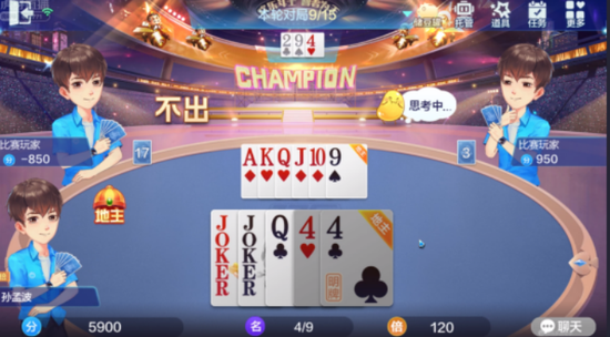 比如小战在B组比赛中曾连续两把当地主,对局中同样都是以中期打顺子、王炸作结尾,打的对手直接怀疑人生,实锤小战就是个“不洗牌玩家”。