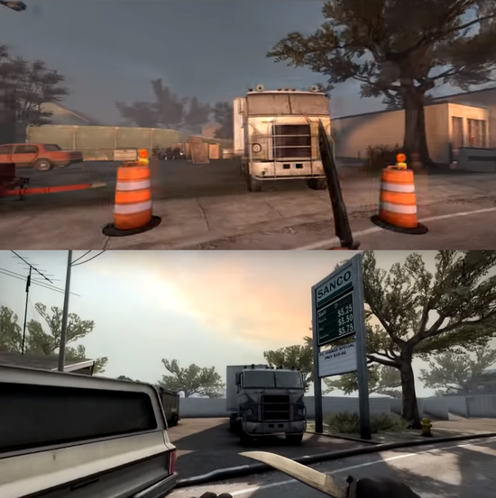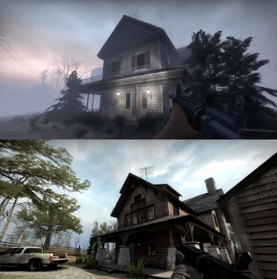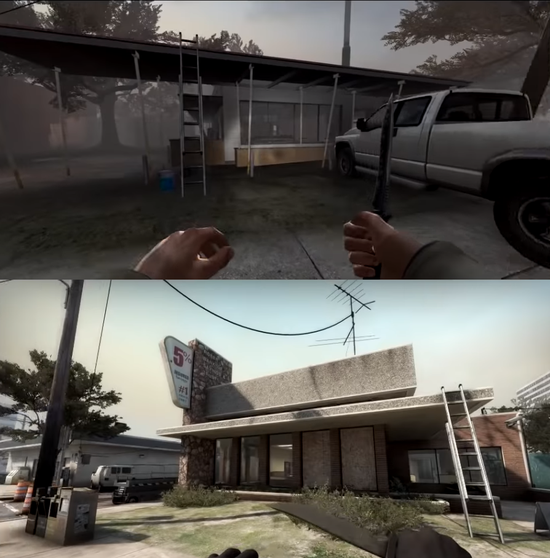 CSGO服役地图池地图多由官方所设计,少数优秀的社区创意工坊地图作品有时也会被官方选入作为正式地图使用。不过你知道吗?CSGO中还有部分地图实际借鉴了V社自家四人合作僵尸射击游戏——求生之路L4D2中的战役地图,而这些"借鉴"的地图基本都来自CSGO战争游戏模式中的爆破模式地图。