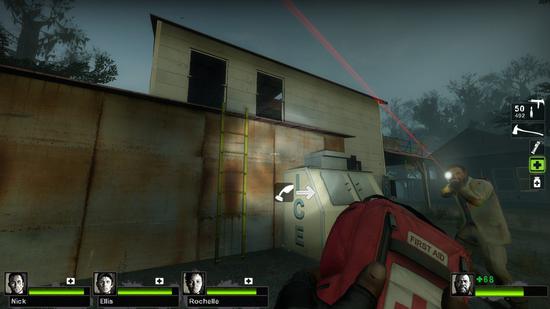 守卫这栋双层别墅真心是几年前打僵尸挥之不去的噩梦——狭小的入口成吨的尸潮、jockey二楼窗口绕后骑脸、Tank扔巨石成吨AOE。想要在这栋楼里守卫四面来敌有些分身乏力了。