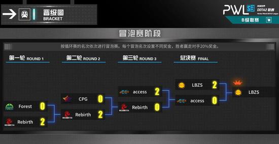 对线期LBZS在米拉娜的积极游走下顺利的打开了局势,10分钟领先对手3K经济的同时又拿到了共计8个击杀,拉席克更是以5K的经济领跑全场。16分钟LBZS抱团于中路击杀两人后试图控下不朽盾,但在access众人复活后双方再度于肉山处展开团战,随后access成功捡漏连斩LBZS四人的同时控下不朽盾。26分钟LBZS于天辉三角区处击杀对手二人后再度控盾,但access在仅有三人的情况下主动出击,在天穹守望者的疯狂输出下斯拉达成功抢盾,同时天穹守望者完成三杀。39分钟双方于夜魇上路野区再度遭遇,LBZS以玛尔斯、拉席克买活的代价团灭对手后,抓住机会连破夜魇三路成功拆出超级兵。47分钟LBZS控盾后向对手发起了最后的进攻,经过一番激战后LBZS强拆基地拿下本局比赛的胜利。恭喜LBZS在access的挑战下以2:0成功卫冕B级联赛冠军,同时将72000元的高额奖金收入囊中!