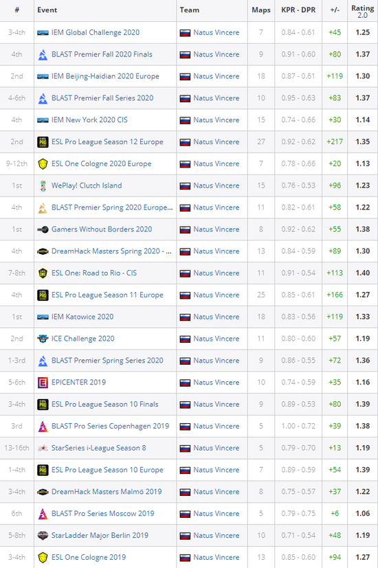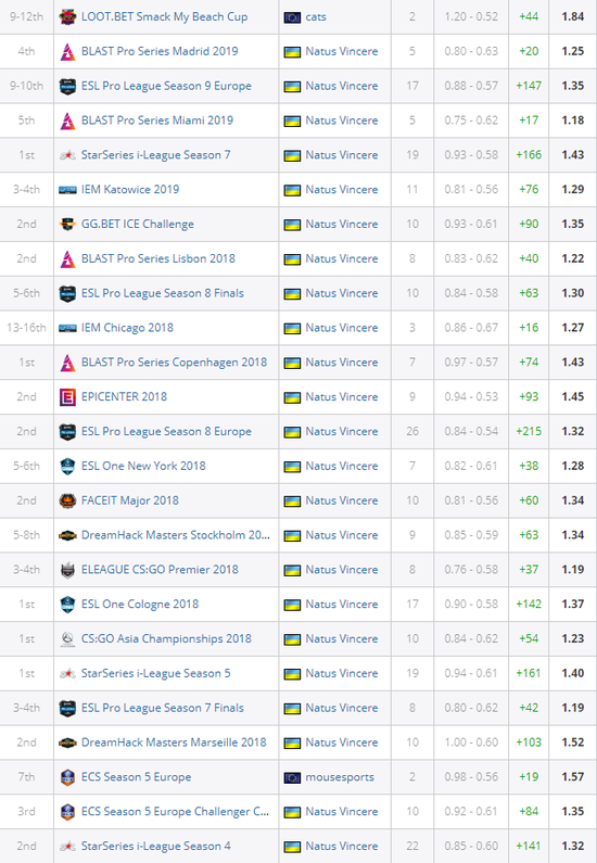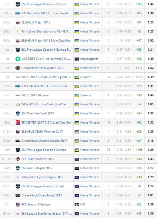 自从2017年的DreamHack Open Tour以来,这名NaVi的当家明星选手就没有在比赛中打出过负战绩。其中表现最佳的要数EPL S7欧洲区,他在那届比赛中打出了+260的+/-比,同时获得了1.44的rating。不过那次比赛NaVi仅仅获得第三名,冠军被mousesports夺走。
