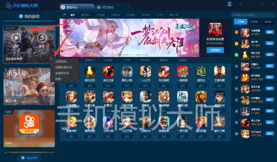 3安装完默认会自动启动。以后要运行,可以进“游戏中心”,左侧我的游戏列表,鼠标指向对应游戏图标,可以选择“运行”或者“多开”。更多操作功能可以点击游戏图标右下角小箭头。