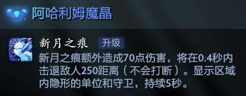 帕克在更新后获得了阿哈利姆魔晶效果——新月之痕将造成额外70点伤害,同时击退敌人250距离。显示区域内隐形的单位和守卫,持续五秒。
