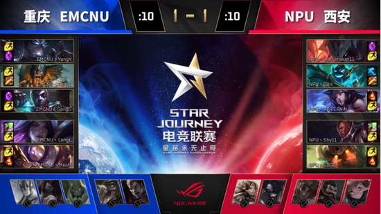 ROG玩家国度为了解决草根电竞选手难以晋升的难题,举办了STAR-JOURNEY星途电竞联赛,为广大玩家创造了一个可以“一步登天”的舞台。在去年的联赛中多位优秀选手脱颖而出,加入了职业电子竞技俱乐部中,并且各个热门游戏的领域都有涉及,囊括了英雄联盟、王者荣耀和CS:GO三个当下国内外热门电竞项目,目前赛程已经推进到了全国赛,而来自重庆和EMCNU战队和西安NPU战队的这一场BO3的决胜局堪称经典。