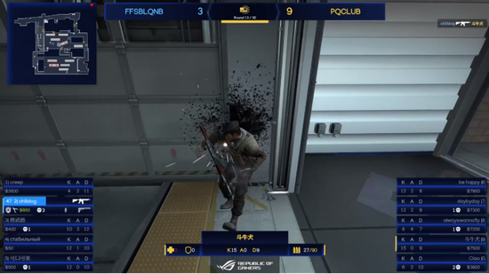 到了第十三局,FF战队的chilldog在1v2的残局之下冷静搜点,从CT中绕道阴面,侧身打残一人。虽然PQ两员大将的道具干扰非常到位,但架不住chilldog的神勇发挥,先秒掉在六道上的daybyday,再反手对枪打掉同样绕到阴面的斗牛犬,随后凭借钳子的速度成功拆除炸弹,为战队赢下一分。