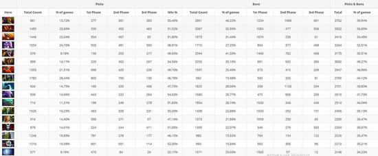 在2020年的职业比赛中,蝙蝠骑士是被送上BAN位次数最多的英雄。这个自打推出以来就一直在被削弱,几乎没有吃到一次加强的英雄在6276场比赛中被BAN掉了2901次。伐木机则以2594次紧随其后,并且这个英雄有1406次是在第一轮禁用中就被直接送上观战席。小精灵和凤凰则是两个要么不被BAN,要BAN就直接被1BAN的英雄。在艾欧的1571次被BAN记录中,有高达1502次是被1BAN,对于凤凰来说,这两个数字则分别是1973和1674。