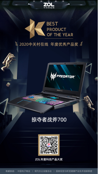 本次获奖的掠夺者战斧700,以划时代的机械结构和登峰造极的性能一举夺得年度优秀产品奖。作为经过众多专业评委以及大众投票评选出的年度最佳产品,战斧700不仅具有全球首创突破性的下拉式键盘,同时在键盘下来及开启性能猛兽的“极刃模式”,佐以体验感逼真的线性压感按键、究极散热以及电竞本界最顶级配置等众多黑科技加持,令战斧700足以傲立山巅,俯瞰天下!