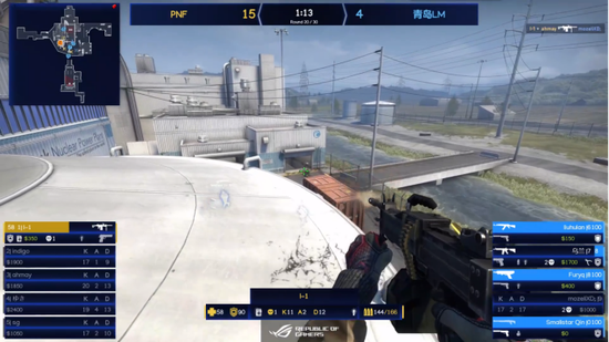 第20小局的赛点局中,PNF战队选择ECO,结果对内l-1选手不走寻常路,直接掏出内格夫加沙鹰,爬上小山准备开始自己的火力压制。但没想到自己吭哧瘪肚(费劲)爬梯子的时候,队友已经被对面的两个战神全部解决,全队独苗l-1在换掉mozeli之后自己也被收下,送出一局赛点。