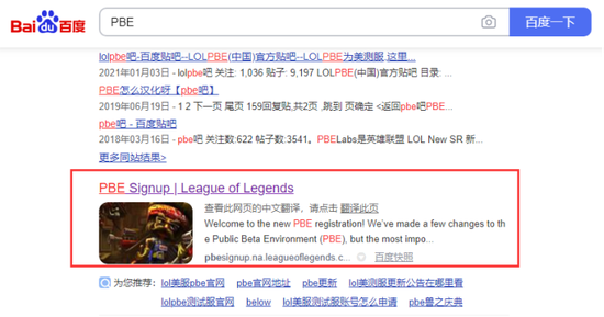 首先,搜索“PBE”或者在浏览器输入网址:https://pbesignup.na.leagueoflegends.com/en_US/pbe