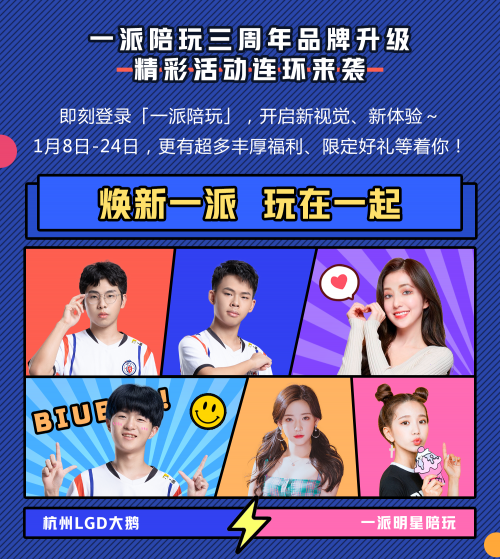 焕新一派,玩在一起!升级后的一派陪玩全新启航,期待与万千用户共新生,陪伴更多的用户一同成长与蜕变!想要了解更多活动详情,就快下载【一派陪玩】APP,无数惊喜等你探寻!