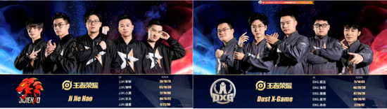 从以往比赛累计的KDA数据能看出两只战队的核心输出位,JJH战队整体会偏向于野核,打野的KDA数据为65/14/39。DXG战队则更偏于多核,KDA数据较为平均,没有个人实力特别突出的选手,中野下三个位置都可作为输出位。所以总决赛这场BO3中,JJH战队能否顺利地通过野核优势一往无前呢?DXG战队又能否在前期用多核打法奠定胜局呢?一起来看看比赛双方战队的表现吧!