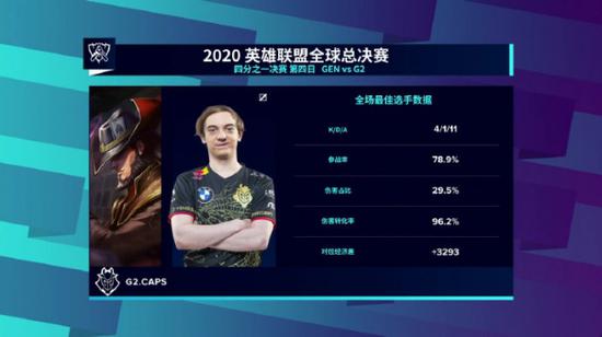 《英雄联盟》2020全球总决赛S10淘汰赛第四场现已正式结束,这场最后一个半决赛晋级名额的争夺站,最终以G2 3:0 横扫GEN告终,恭喜G2晋级四强,接下来他们将面对来自LCK赛区的种子队伍DWG。
