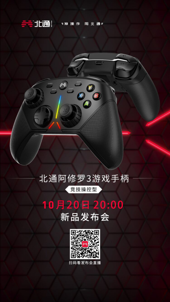 今天(10月20日)20:00,北通阿修罗3新品发布会将在哔哩哔哩开启直播!直播上将会放出阿修罗3游戏手柄的最新情报,抽奖福利。