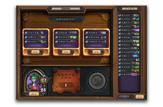 对局结束后,你将获得额外的生命值,并且可以从三类不同主题的卡牌中选择一类加入套牌。你偶尔也能在三个极为强大的宝藏中做出选择!