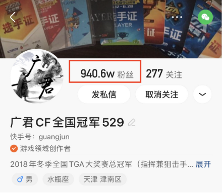 曾经征战CFPL的前职业战队选手、TGA全国冠军广君就是职业战队与快手直播完美结合的例子,在快手粉丝量达940万,CF全网订阅量上排所有主播第一位,更有望在双月内成为首位破千万的CF主播。另一位来自快手的主播威廉全网人气排名第一,借助平台优势,粉丝增长速度最快。