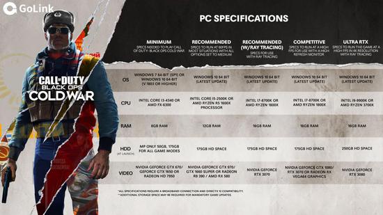 年货大作《使命召唤17》的B测成功也预示这“黑色行动”系列的正式回归,除了经典元素本次的《黑色行动冷战》也加入了许多全新的多人模式。虽然这次也是以线上模式为主但是这次开发商非常讨巧的没有舍弃单人战役,“僵尸模式”也将一同上线,玩家们看了直呼有“黑色行动”那味了。近日官方也是公布了《使命召唤17》的游戏配置,接下来就和Golink免费加速器一同了解一下吧~