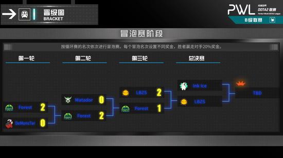完美世界DOTA2联赛冒泡赛11月7日赛况!A、B级冒泡赛可谓悬念迭生,3轮BO3均打满三局。B级联赛的LBZS在与强力的挑战者 Forest鏖战三局后,成功以两局翻盘挺进决赛,8日等待他们的将是本届PWL未尝一败的Ink Ice!A级联赛Galaxy Racer击败老将Mushi带队的IO Dota后又与Magma进行了一番激战,最终成功赢下两个连续的BO3,晋级到决赛日的争斗。下面就跟我们一起回顾下精彩比赛。