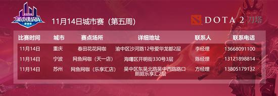 11月14日本周六,完美世界城市挑战赛秋季赛DOTA2项目将在重庆、宁波、苏州开启。上周末第四周比赛通往全国赛的晋级名额经过激烈的战斗已经决出,火热报名仍在继续,赶快点击官网报名加入战斗行列吧!