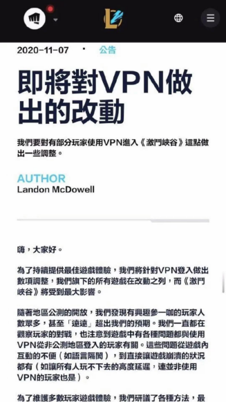 首先拳头官方并没有明确提及锁区,只是禁用了部分的流量较大的加速节点。所以,各位玩家可以放心拳头是不可能将国内的所有加速器都BAN掉的,毕竟国内玩家也是拳头重点维护对象,小编想后续必然还有其他登录游戏的方式,所以大家不要着急。