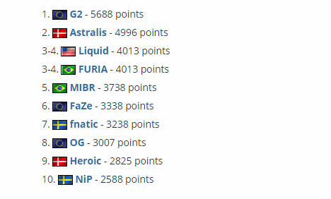 自BLAST排行榜系统公布以来,NaVi还是首支通过此排名系统获得参赛资格的队伍,此榜的排列方式与ESL有所不同,它还收录了竞争对手主办的一系列赛事作为评定。