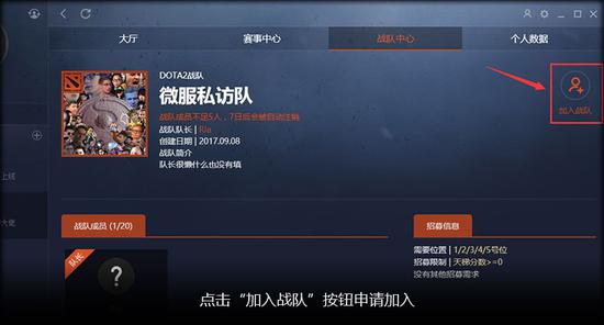 点击“加入战队”按钮申请加入。