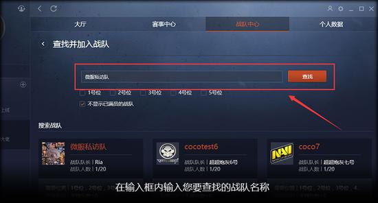 在输入框内输入您要查找的战队名称。