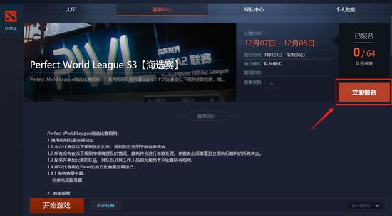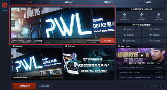 在赛事中心页面,选择完美世界DOTA2联赛。
