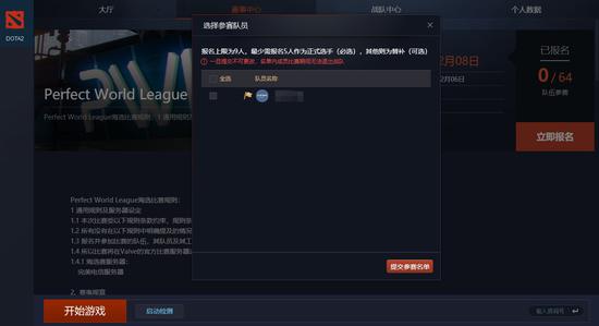 勾选战队队员,提交参赛选手名单。