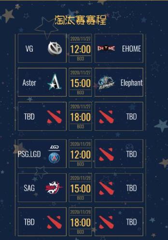 27日将进行胜者组前两轮的比赛,四支队伍决出一个总决赛名额。28日有败者组前两轮的比赛。29日则是败者组决赛和总决赛Bo5的巅峰之战,笑到最后的队伍将加冕中国DOTA2职业杯S2冠军,将200000人民币的总奖金收入囊中。