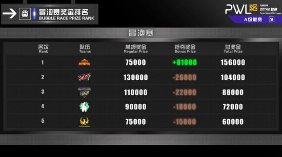 【A级联赛排名及奖金情况】