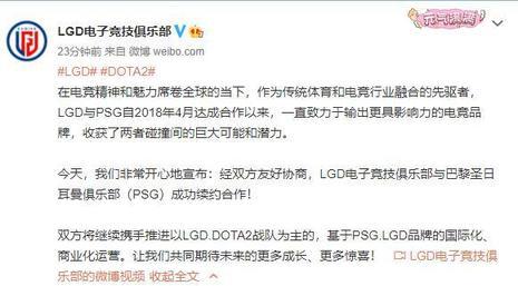 LGD电子竞技俱乐部宣布与巴黎圣日耳曼俱乐部成功续约合作,并公布了新的LOGO。