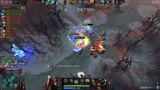 17分钟,天辉打盾,斯温疯脸蓝杖连击刀带上不朽,此时斯温仅17分钟已是1W2的经济。