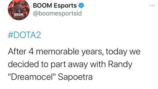 BOOM Esports在其社交平台宣布和一起度过了四年的一号位Dreamocel分手,并发布了视频感谢他为队伍做出的贡献。