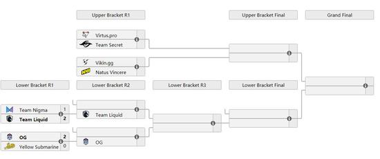 EPIC联赛淘汰赛在北京时间12月9日凌晨正式开始。首先进行的是败者组的比赛,Liquid和Nigma继续上演经典的新老液体之战。第一局,面对Miracle-再次祭出的招牌SF,Liquid依靠小黑蚂蚁体系稳扎稳打,并在团战中坚决集火影魔拿下了胜利。第二局Nigma依靠美杜莎体系搬回一城,但第三局Nigma继续使用美杜莎体系,被Liquid破解,后者赢下这场对话晋级下一轮。OG则迎接唯一一支次级联赛的队伍Yellow Submarine的挑战。黑马的故事没有继续上演,OG用教科书般的斯温体系在一小时之内结束了这个BO3。
