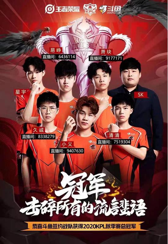 事实上,斗鱼在电竞战队上的布局一直可圈可点。今年,斗鱼签约的JDG、TES和DWG三支英雄联盟战队包揽了2020年LPL春季赛、夏季赛,2020年英雄联盟季中冠军杯和全球总决赛的冠军;绝地求生战队LSTARS获得了2020PCL春季赛冠军。而DYG战队获得2020KPL秋季赛冠军,更进一步夯实了平台在移动电竞领域的布局深度。