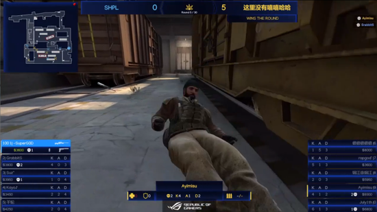 比赛的第一张地图为Train,SHPL首先为CT防守方,嘻哈战队为T进攻方。嘻哈战队的rapgod选手大胆前顶到包点附近侧身打掉三人,又配合队友击杀一人,顺利拿下手枪局。随后SHPL选择ECO放掉一局,第三局SuperGOD直接扛起无甲大狙,但是马了两枪,被嘻哈战队摸到近点反杀。开局手感就十分火热的嘻哈战队一路高歌猛进,连续得分,将比分拉到5:0。